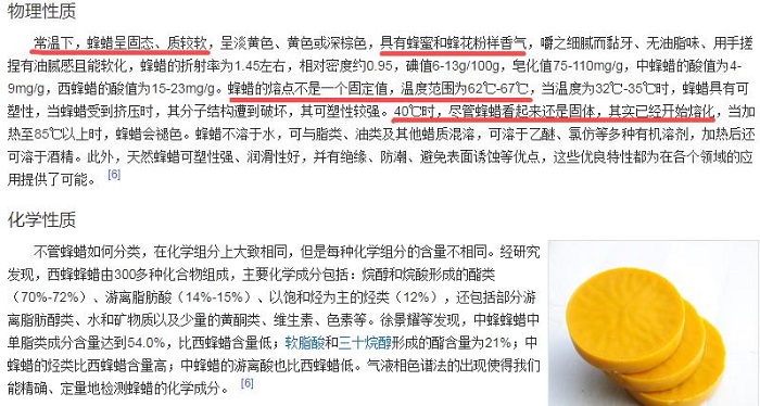 为此小编专门查了一下蜂蜡的特性,如下图三