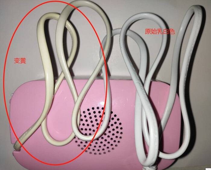 瞧瞧,在试验箱内部的电源线(红圈内)与外部的电源线颜色区别,试验箱内部的电源线已明显泛黄,试着擦了擦还擦不掉,尴尬了!