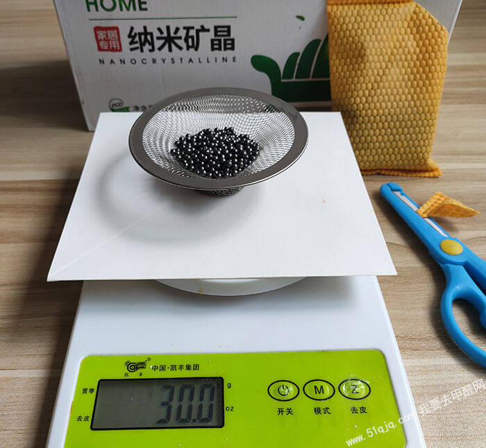 1、使用电子秤称30g山山纳米矿晶