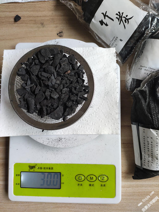 1、使用电子秤称30g竹炭