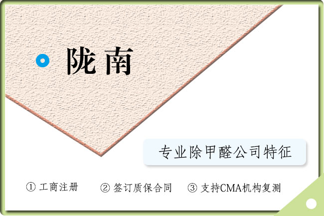 本网页所汇总整理陇南除甲醛公司可提供新房室内装修、办公室装修专业除甲醛服务,部分公司还支持室内除甲醛加盟。这些公司已经工商登记或取得行业协会室内空气净化资质相对更正规靠谱,希望对大家有所帮助。