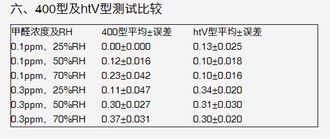 目前英国PPM分两个系列:PPM-htV型及PPM-400型,其中PPM-htV型是在旧型号400型甲醛检测仪的技术基础上,增加了自行研发的湿度补偿功能。即使在湿度较高的情况下,htV型依然能准确地测量低浓度的甲醛,仪器操作方便,校正简单。简单说就是英国PPM-htv相对更准确一些,下边是两个系列的数据精度对比见下图。