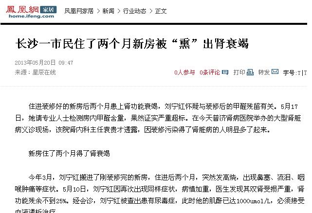 法院于2009年11月17日作出一审判决:该公司承担刘女士所需各项费用334万多元的70%,即233.8万多元,这是我国由于装修污染引发的数额最大的甲醛污案件,中央电视台《今日说法》栏目曾经进行过专题报道。