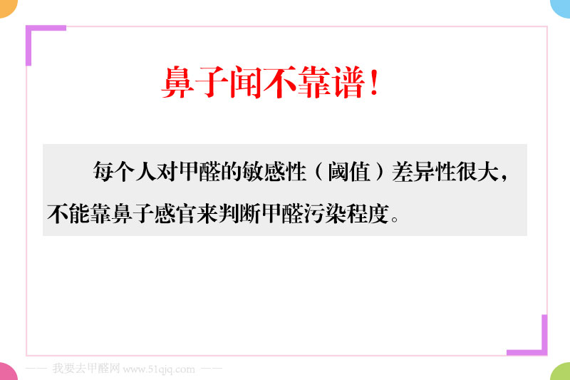 所以依靠个人嗅觉来判断室内空气质量是不科学的,也是不安全的,对一个敏感度差的人来说势必会给自己和家人带来很大的安全隐患。