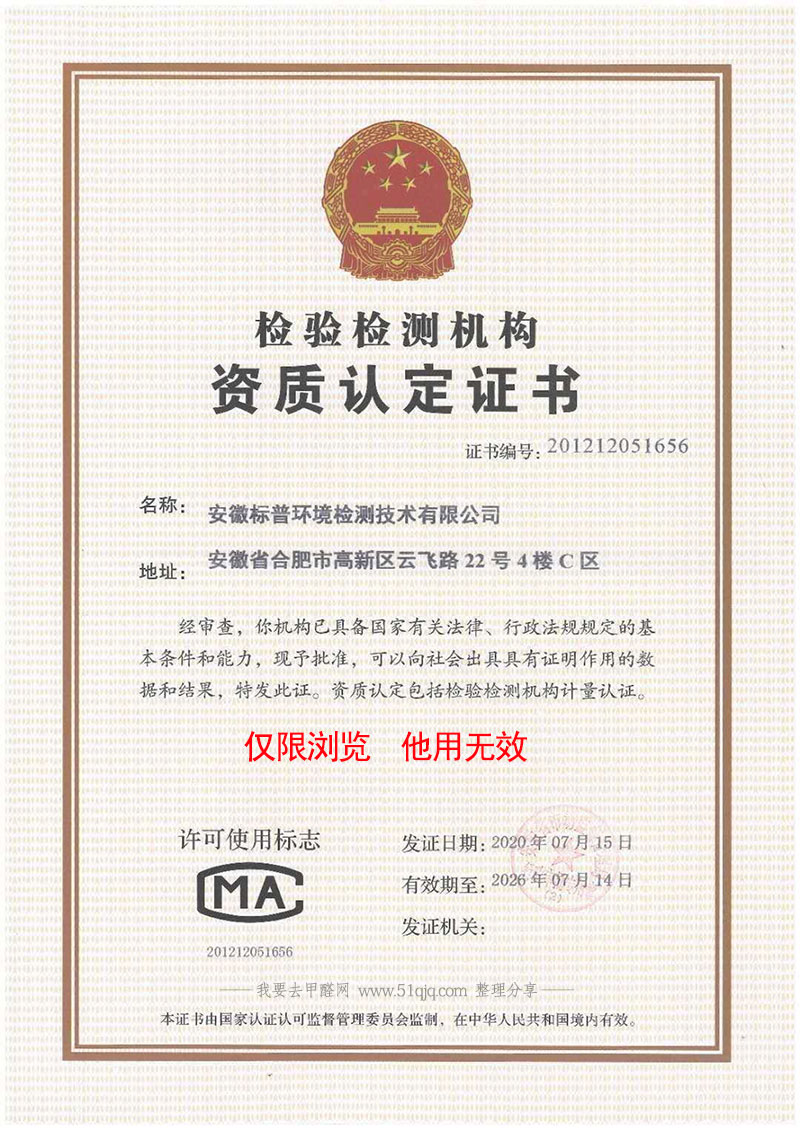 (1)CMA认证甲醛检测机构:专业第三方检测实验室