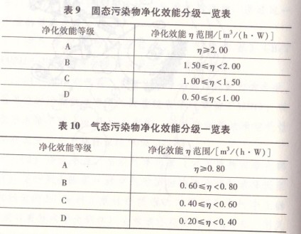 表9固态污染物净化效能分级一览表