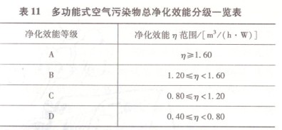 表11多功能式空气污染物总净化效能分级一览表